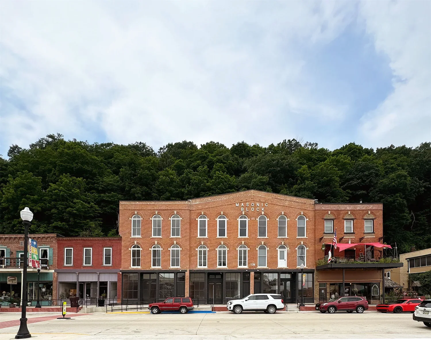 Historic condos for sale in McGregor, Iowa with bluff views. Suite 303 offers 1,554 square feet with a private balcony facing the 40-foot cliff. Two bedrooms, two full bathrooms, and thoughtful layout in the award-winning Masonic Block; ideal for second-home buyers or retirees seeking Mississippi River living in Northeast Iowa.